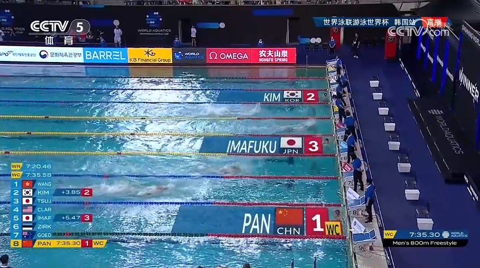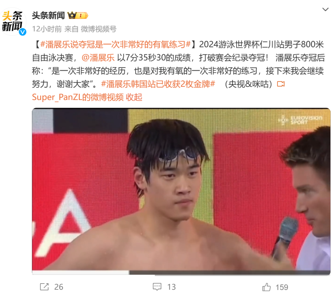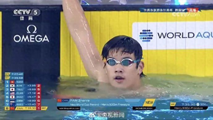 在2024游泳世界杯仁川站男子800米自由泳的决赛中,潘展乐夺得金牌,并打破赛会纪录。