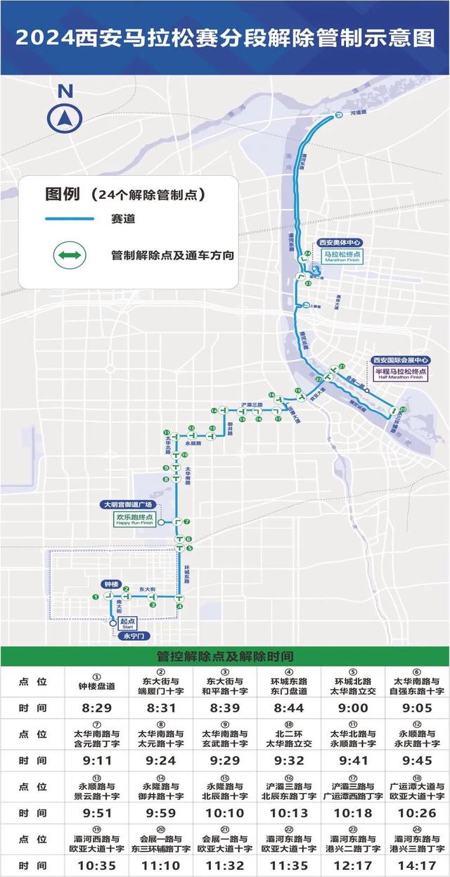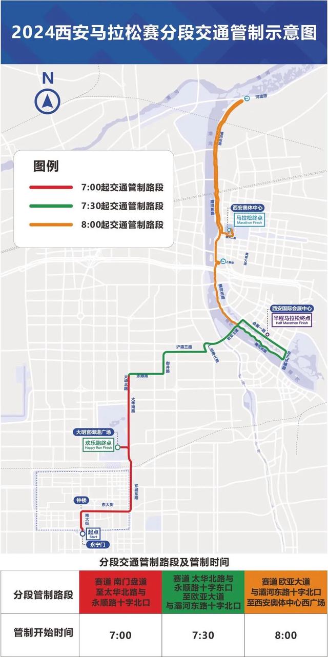 3. 11月3日8时起,对赛道欧亚大道与灞河东路十字北口至西安奥体中心西广场实行交通管制。