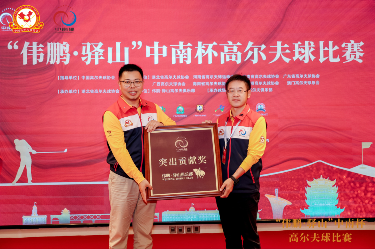 期间,中国高尔夫球协会秘书长韦庆峰为伟鹏·驿山高尔夫俱乐部颁发突出贡献奖。