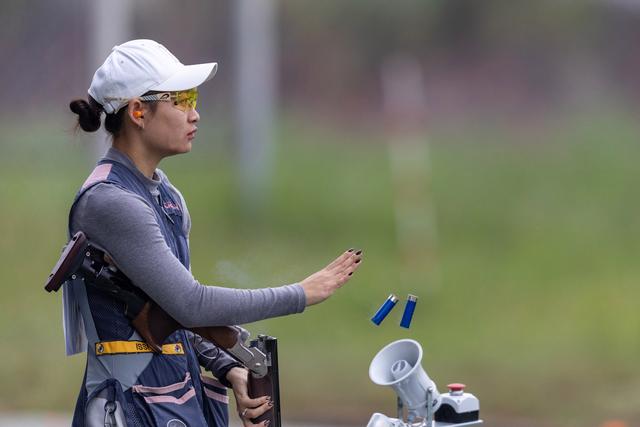 当日,2024全国射击总决赛(飞碟项目)女子双向决赛在重庆举行。