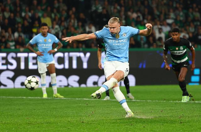 11月5日,曼城队球员哈兰德主罚点球。新华社/路透