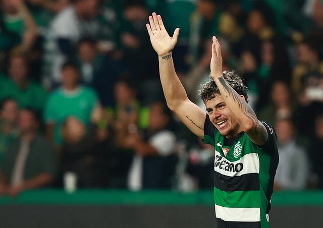 11月5日,葡萄牙体育队球员阿劳霍在进球后庆祝。新华社/路透