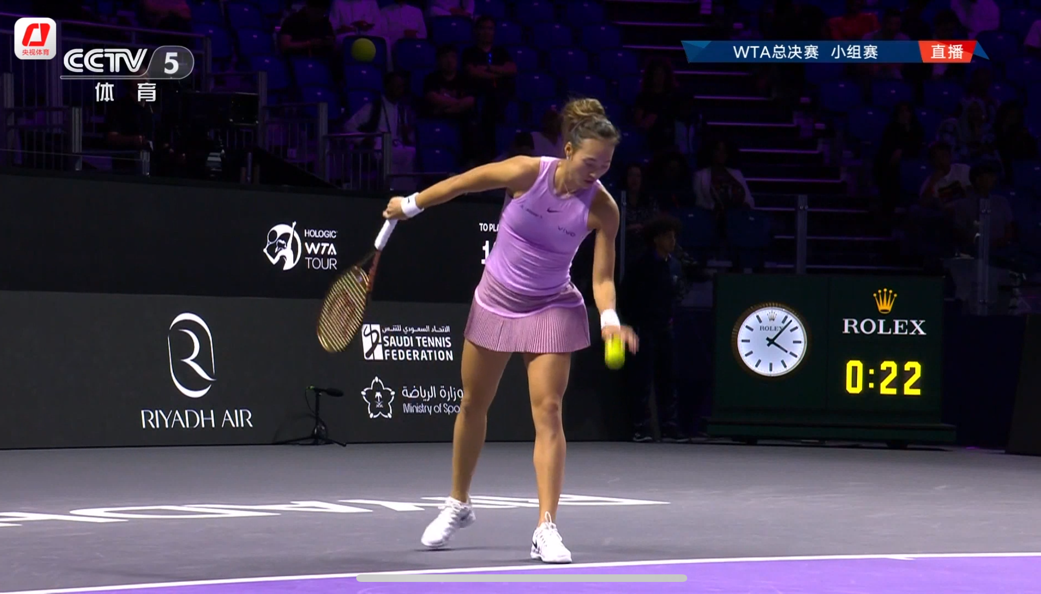 WTA年终总决赛小组赛紫组末轮,中国选手郑钦文对阵意大利选手保利尼,最终郑钦文以2-0的比分横扫对手,小组赛2胜1负第二名出线,顺利挺进年终总决赛四强!