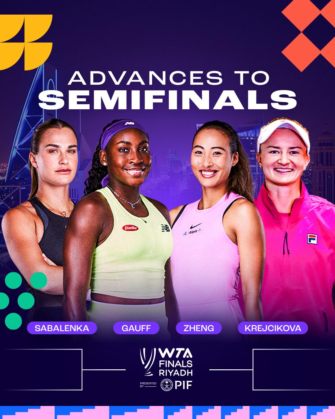 凭借这场胜利,克赖奇科娃以橙组第一的身份晋级四强,将在半决赛对阵中国“一姐”郑钦文。此前两人仅有过一次交手,郑钦文三盘逆转取胜。另一场半决赛将在头号种子萨巴伦卡和高芙之间展开。