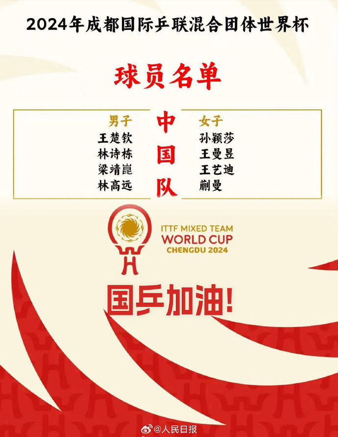 2024年成都国际乒联混合团体世界杯将于12月1日至8日在中国成都举行。国际乒联于今日正式公布参赛球员名单,中国队名单如下: