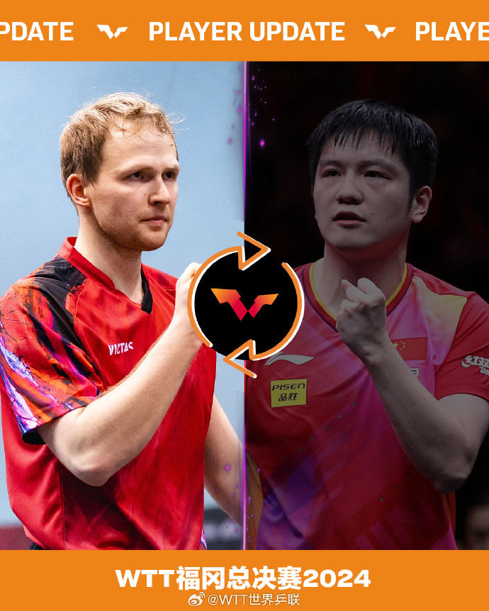 樊振东退赛,贝内迪克特·杜达递补;马龙退赛,安东·卡尔伯格递补;陈梦退赛,伯纳黛特·斯佐科斯递补。