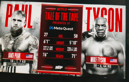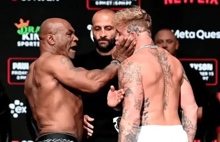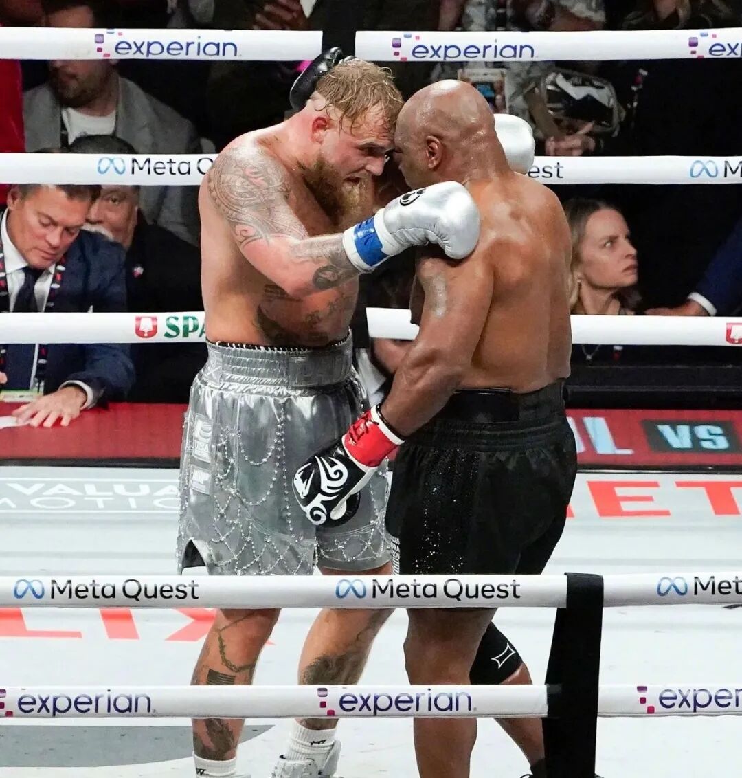 北京时间11月16日,58岁的拳王迈克·泰森vs27岁的网红拳击手杰克·保罗的8回合拳击赛打响。
