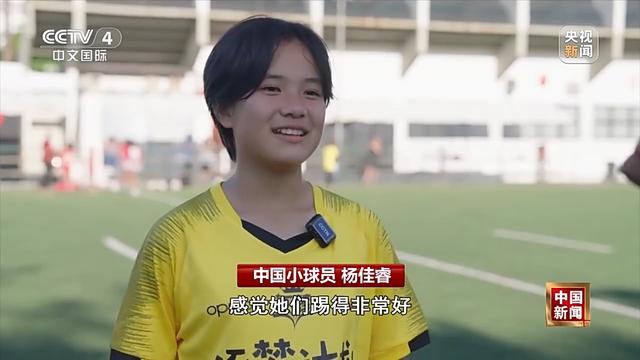 中国小球员 杨佳睿:感觉她们踢得非常好,然后我们和她们踢得也是非常愉快。感觉她们这里的足球很受欢迎,随处可见的足球场,还有俱乐部,墙上也会画一些关于足球的标识。