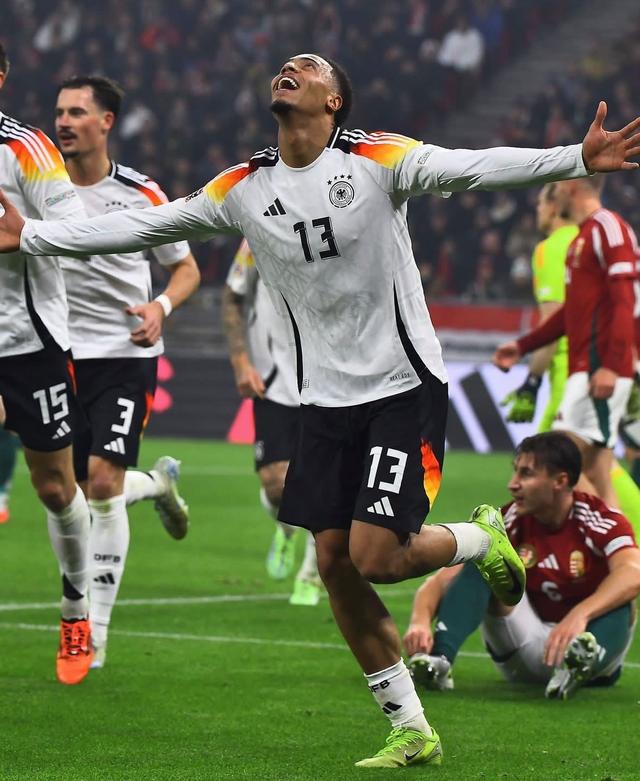 德国队球员恩梅查庆祝进球。图片来自欧国联官方社交账号