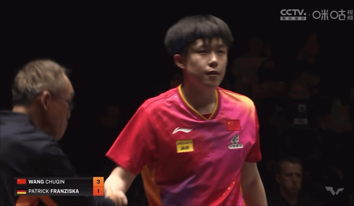 11月21日晚,在福冈举行的WTT年终总决赛男单首轮的比赛中,王楚钦以3比1击败弗朗斯西卡,顺利晋级男单八强,四局的比分为:11-7、12-10、11-13、11-6。