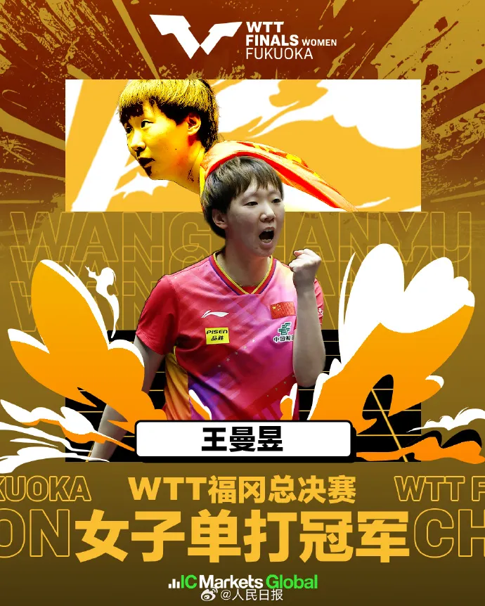 11月24日,在2024年WTT世界乒联福冈总决赛女单决赛中,中国队选手王曼昱以4-3战胜队友陈幸同,夺得冠军。