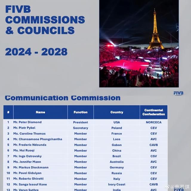 据@人民日报体育消息,北京时间11月25日,国际排联公布2024-2028年奥运周期各委员会及理事会组成名单,中国女排前队长惠若琪入选通讯委员会。