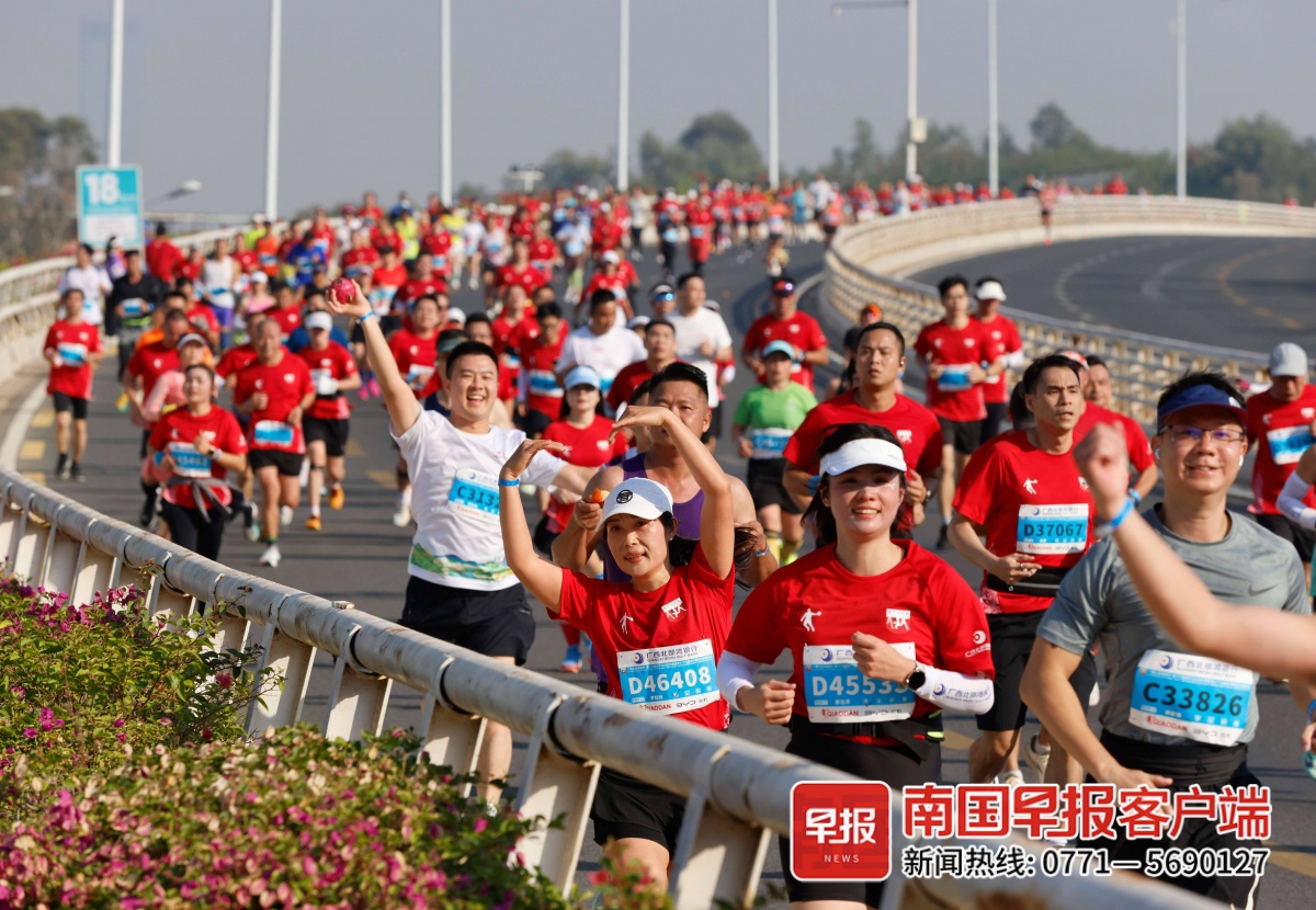 ▲12月1日,2024南宁马拉松开跑,参加半程马拉松的选手们路过良庆大桥。记者 苏华 摄