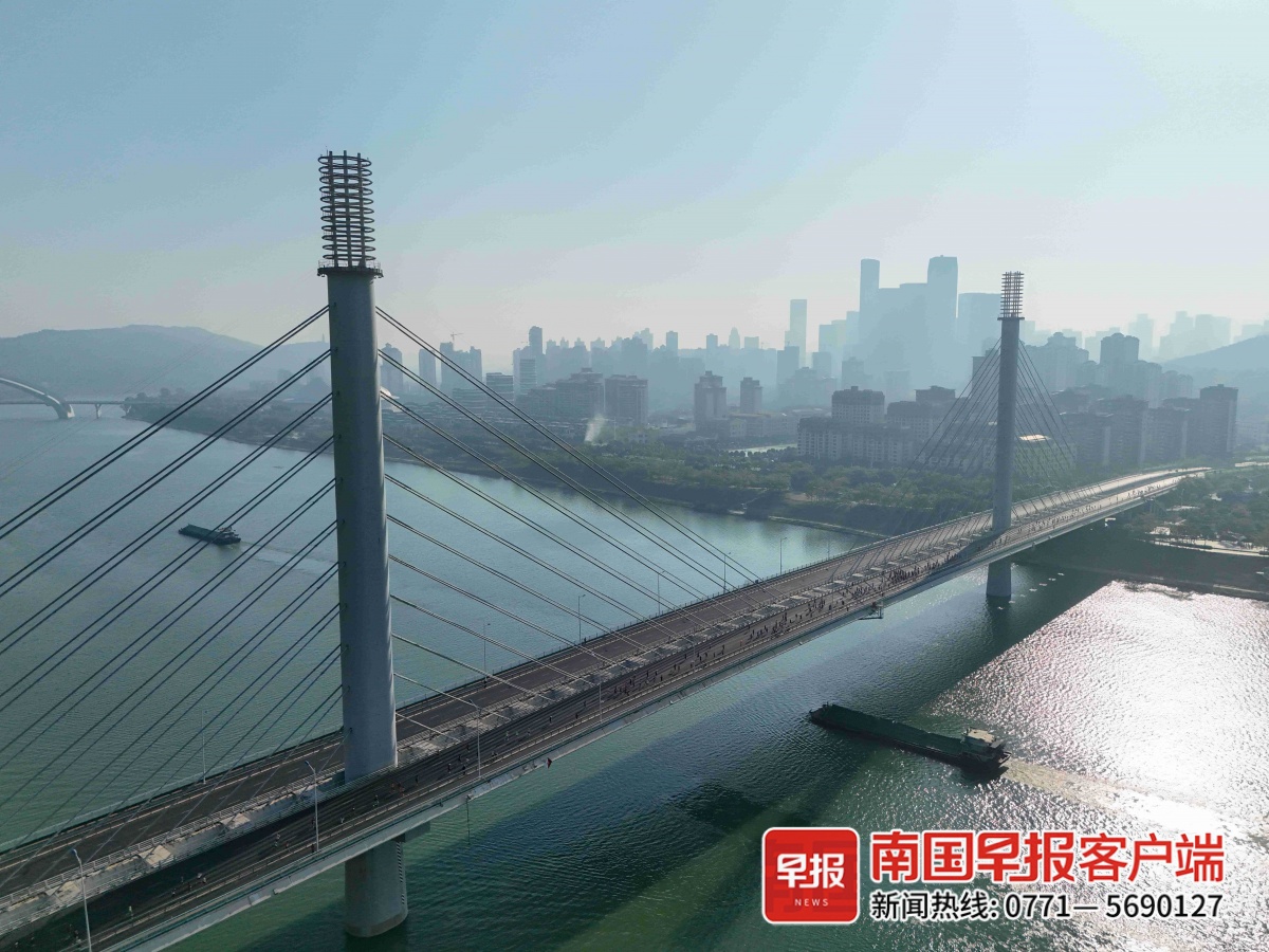 ▲跑友穿过五象大桥。记者 邹财麟 摄