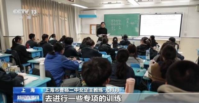 上海市曹杨二中女足主教练尤丹丹:高三的学生课业比较紧张一些,我们就会用中午或者是大课间的时间进行一些专项的训练。另外,我们也会和年级部的老师多沟通,如果发现学生学习方面有需要补充的地方,会对部分学生进行针对性训练调整。