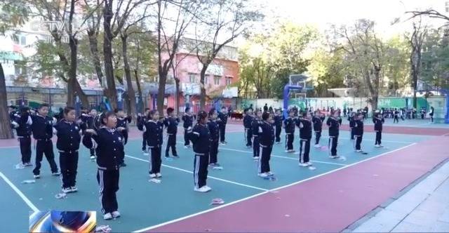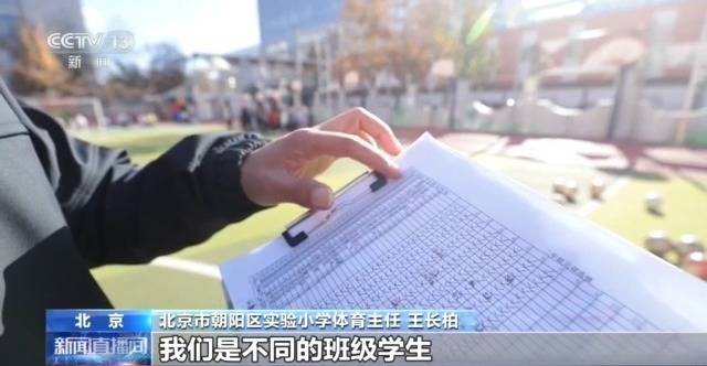在北京市朝阳区实验小学,上午10点30分,大课间活动结束后,操场由四个不同班级的学生同时使用,一年级的两个班体育课是练习跳绳,而另外两个班的二年级学生正在进行足球课的专业训练。