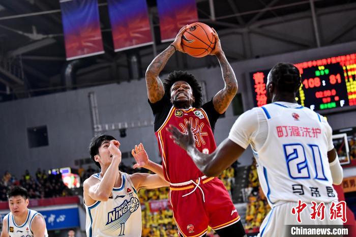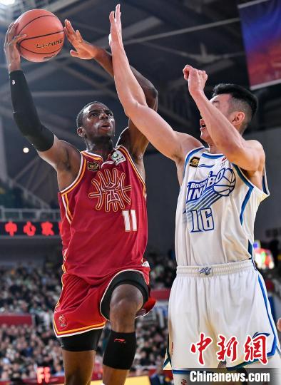 12月1日,山西汾酒队球员迪亚洛(红)在比赛中上篮。当日,在太原进行的2024-2025赛季中国男子篮球职业联赛(CBA)常规赛第12轮比赛中,山西汾酒队主场以140比116战胜宁波町渥队。 中新社 记者 韦亮 摄