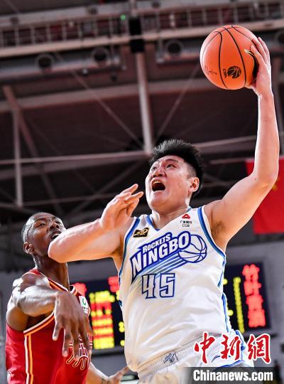12月1日,宁波町渥队球员常林(白)在比赛中上篮。当日,在太原进行的2024-2025赛季中国男子篮球职业联赛(CBA)常规赛第12轮比赛中,山西汾酒队主场以140比116战胜宁波町渥队。 中新社 记者 韦亮 摄