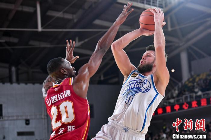 12月1日,宁波町渥队球员拉科塞维奇(白)在比赛中投篮。当日,在太原进行的2024-2025赛季中国男子篮球职业联赛(CBA)常规赛第12轮比赛中,山西汾酒队主场以140比116战胜宁波町渥队。 中新社 记者 韦亮 摄