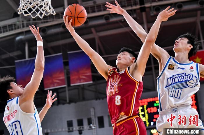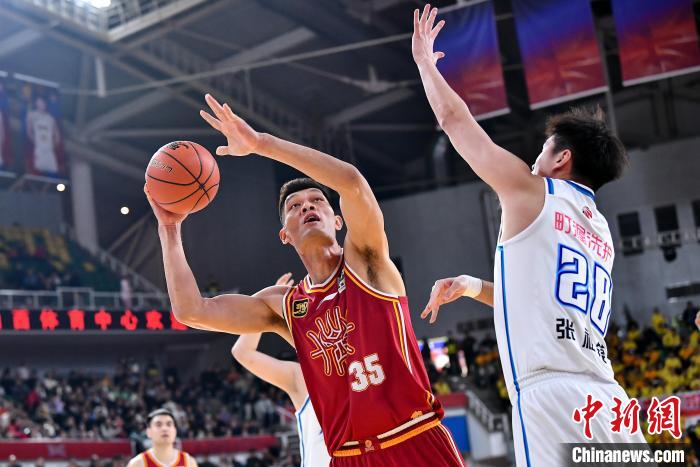 12月1日,山西汾酒队球员葛昭宝(红)在比赛中投篮。当日,在太原进行的2024-2025赛季中国男子篮球职业联赛(CBA)常规赛第12轮比赛中,山西汾酒队主场以140比116战胜宁波町渥队。 中新社 记者 韦亮 摄