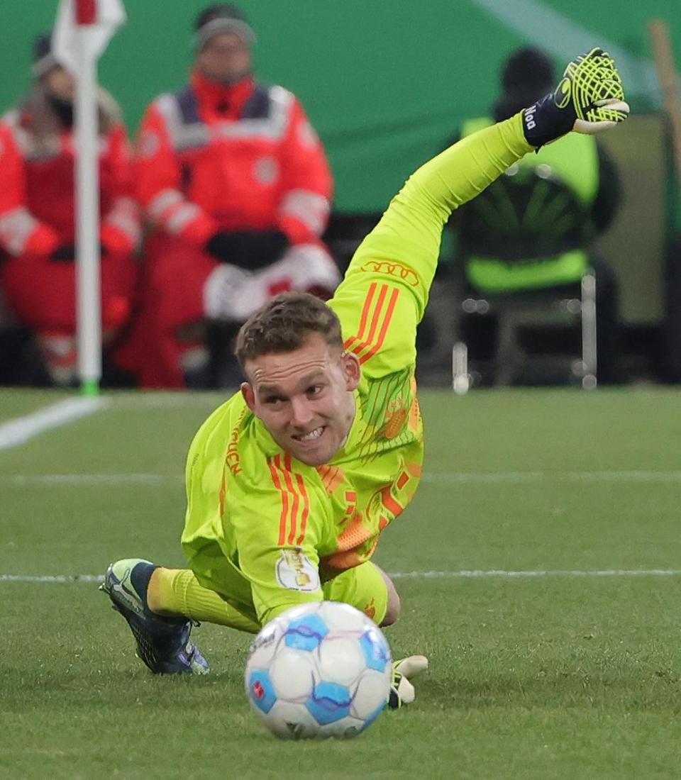 12月3日,拜仁慕尼黑队守门员佩雷茨在比赛中扑救。新华社发(菲利普·鲁伊兹摄)