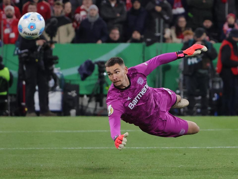 12月3日,勒沃库森队守门员科瓦日在比赛中扑救。新华社发(菲利普·鲁伊兹摄)