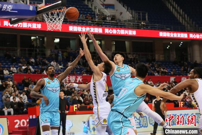 12月4日,双方球员在激烈拼抢。当日晚,在山东青岛进行的2024-2025赛季中国男子篮球职业联赛(CBA)常规赛第十三轮比赛中,青岛国信制药队在主场迎战浙江方兴渡队。最终,青岛国信制药队93比105不敌浙江方兴渡队。张孝鹏摄