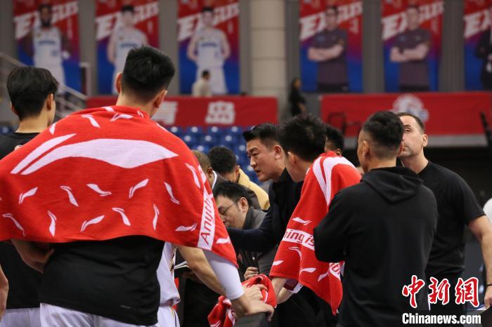 12月4日,浙江方兴渡队主教练王博布置战术。当日晚,在山东青岛进行的2024-2025赛季中国男子篮球职业联赛(CBA)常规赛第十三轮比赛中,青岛国信制药队在主场迎战浙江方兴渡队。最终,青岛国信制药队93比105不敌浙江方兴渡队。张孝鹏摄