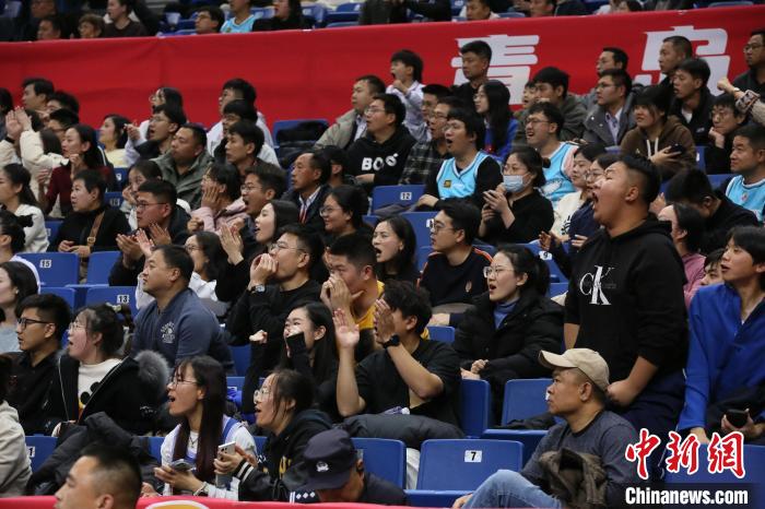 12月4日,现场观众为球员加油。当日晚,在山东青岛进行的2024-2025赛季中国男子篮球职业联赛(CBA)常规赛第十三轮比赛中,青岛国信制药队在主场迎战浙江方兴渡队。最终,青岛国信制药队93比105不敌浙江方兴渡队。张孝鹏摄