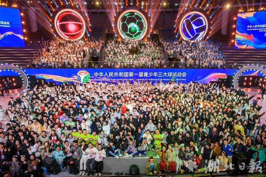 11月28日晚的首届全国青少年三大球运动会闭幕式现场,凝聚着未来和力量。(组委会供图)
