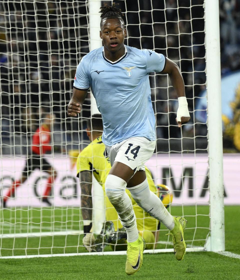 12月5日,拉齐奥队球员诺斯林庆祝进球。新华社发(阿尔贝托·林格利亚摄)