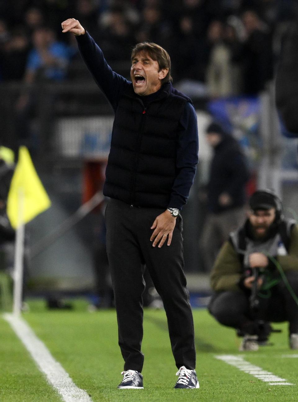 12月5日,那不勒斯队主教练孔蒂在场边指挥。新华社发(阿尔贝托·林格利亚摄)