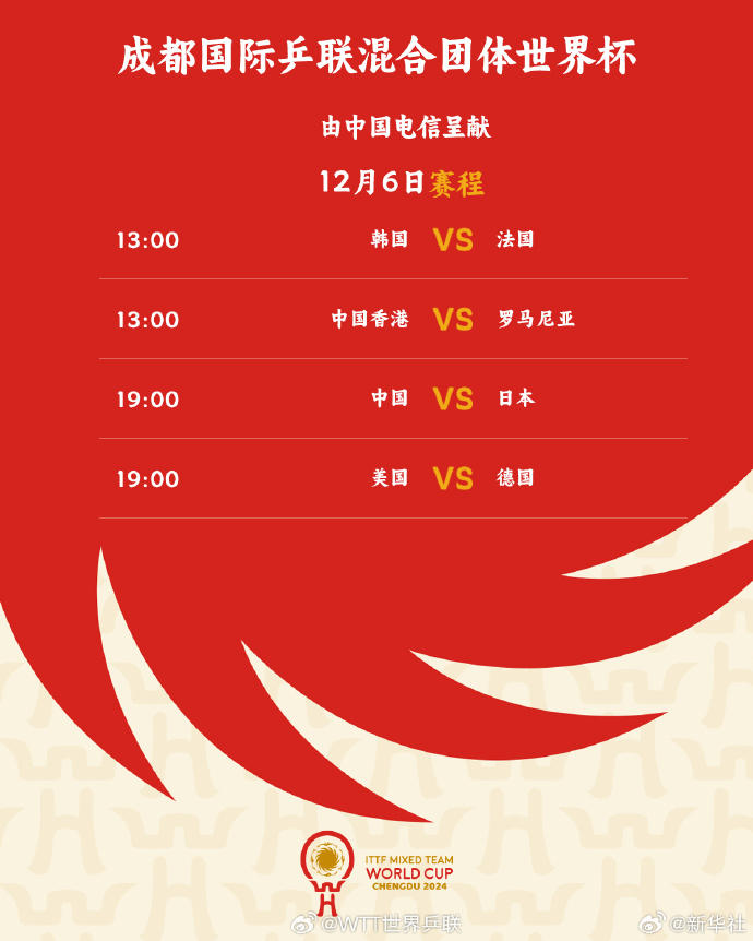 2024年成都混合团体世界杯6日赛程公布。一起为国乒加油!