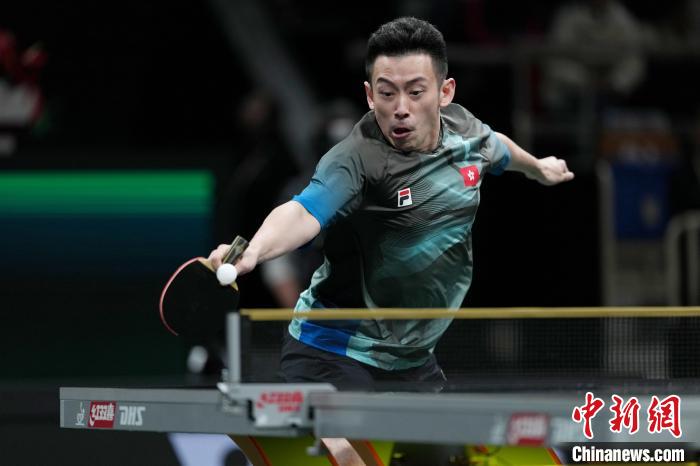 12月7日晚,中国香港队黄镇廷在国际乒联混团世界杯比赛中。 中新社 记者 安源 摄