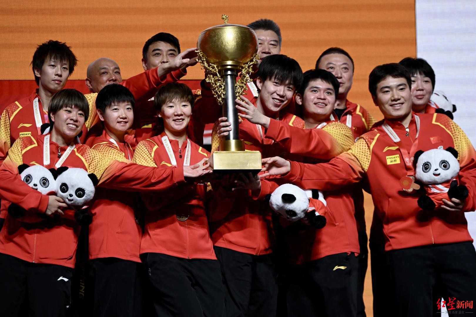 王楚钦同样表示,冠军不只是来自场上运动员的贡献,“取得这个成绩,我们的教练员、辅助人员,包括所有的队友,大家在一起的凝聚力、战斗力才造就了中国队这样强大的团体,所以说感谢每个人。”