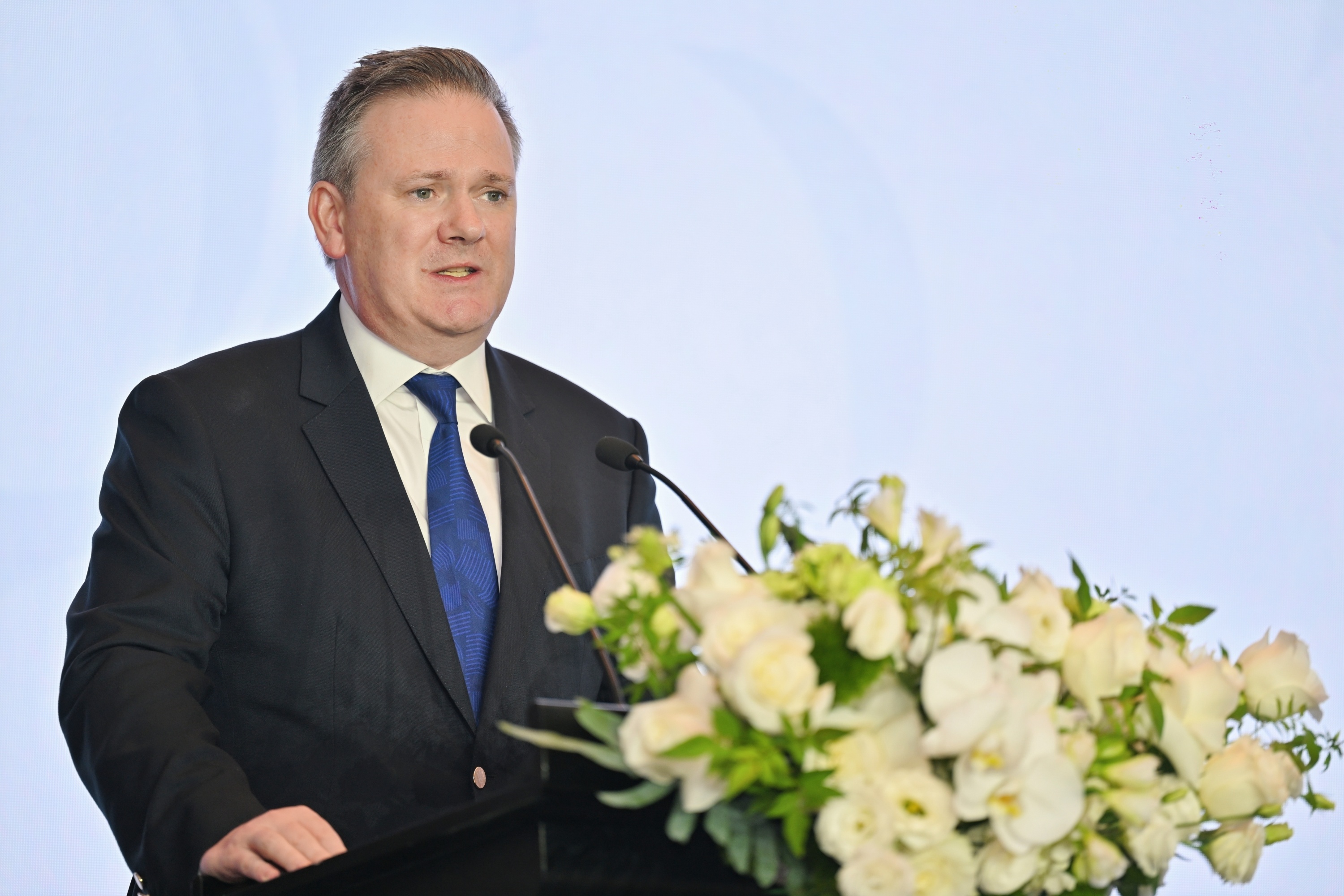 欧巡赛集团首席赛事官及运营官本-高文在发布会上致辞。
