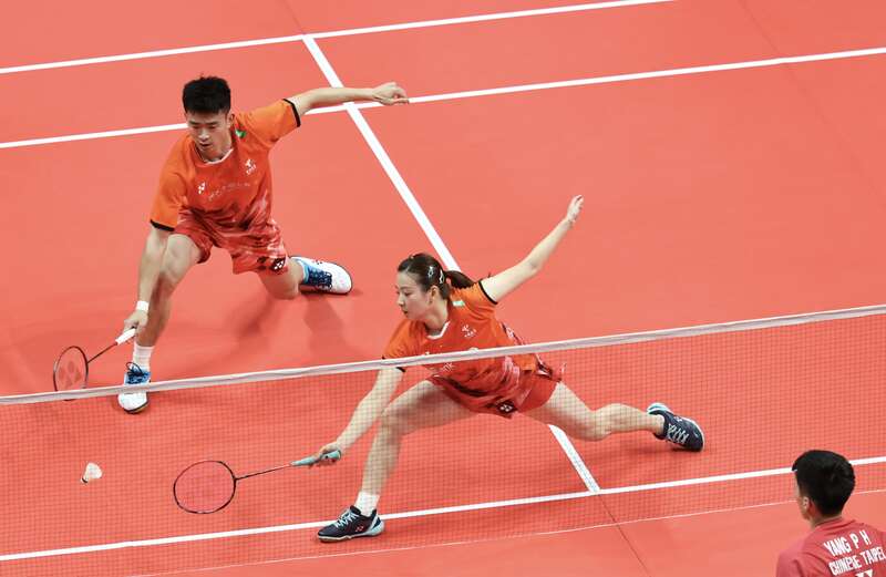 郑思维(右)/黄雅琼在今天的比赛中。刘占崑摄