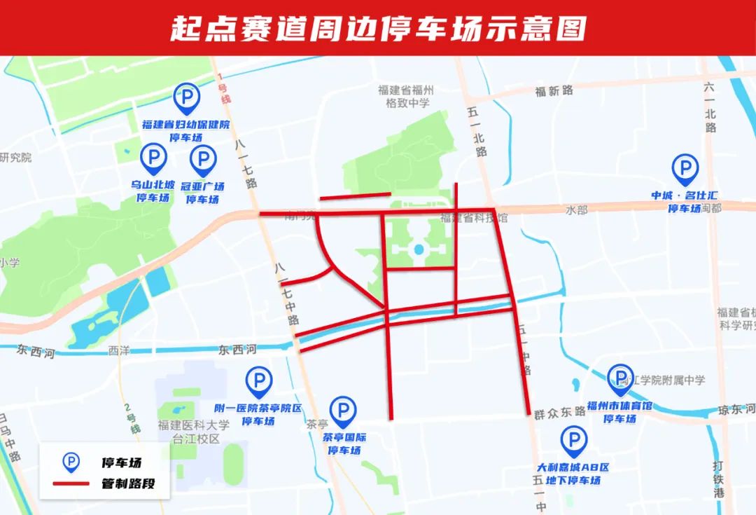 今年的福马赛道从五一广场出发,途经三坊七巷、上下杭、烟台山、花海公园等网红打卡点,为确保赛事活动安全顺利进行,道路交通安全、有序、畅通,福州城区将有多处路段实行交通管制。