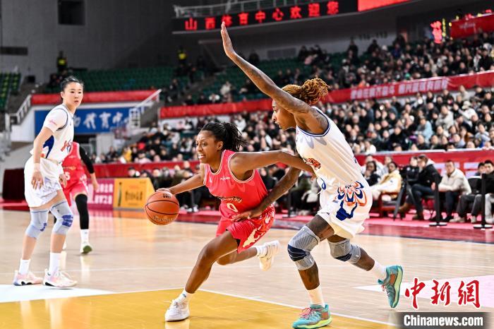 12月27日,山西竹叶青酒队球员米切尔(红)在比赛中带球突破。 中新社记者韦亮摄