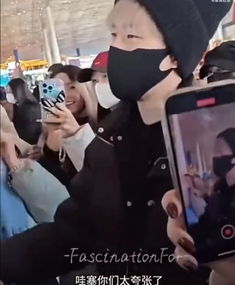 12月28日,王楚钦从北京出发前往上海参加乒超联赛,在机场被粉丝团团围住怼脸拍,王楚钦显得非常无奈:“太夸张了!疯了都!起来起来,不让走吗?”