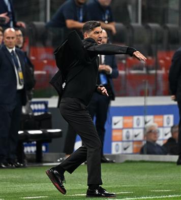 9月22日,AC米兰队主教练丰塞卡在场边指挥。当日,在2024-2025赛季意大利足球甲级联赛第五轮比赛中,AC米兰队客场2比1战胜国际米兰队。新华社发(阿尔贝托·林格利亚摄)