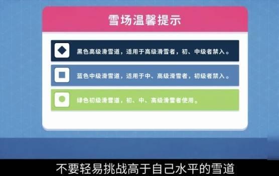 3.人“菜”别去高手道:了解雪道的高度、坡度等情况,根据自身水平选择合适的滑道。