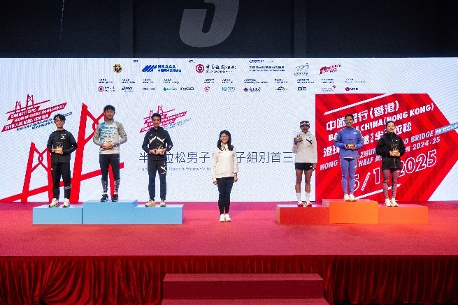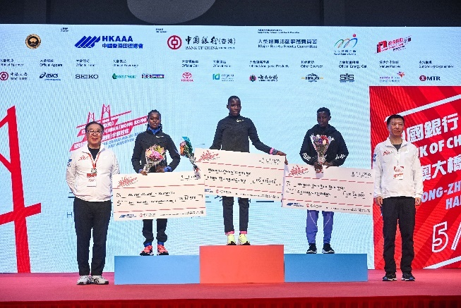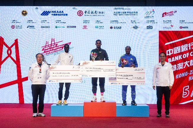 央视网消息:由中国香港田径总会主办,2024/2025中国银行(香港)港珠澳大桥(香港段)半马拉松于1月5日隆重举行。来自全球的近七千名跑者一同在全球最长的桥隧组合跨海赛道上参与半马拉松。男子半马拉松埃塞俄比亚跑者MilkesaMengeshaTolosa以1小时01分27秒率先冲线,肯尼亚跑者PatrickKabirechMosin以1小时01分30秒收获亚军,埃塞俄比亚跑者HaftuTekluAsefa以1小时02分54秒夺得第三名。女子半马拉松肯尼亚跑者GraceLoibachNawowuna以1小时07分56秒夺冠,肯尼亚跑者SheliaChenlangat以1小时08分06秒第二个冲线,肯尼亚跑者ChepngenoViola以1小时08分09秒收获第三名。男子和女子冠军成绩都打破了场地纪录。庄司旸及罗映潮分别以1小时09分44秒及1小时16分45秒成为本地最快的男女子跑者。