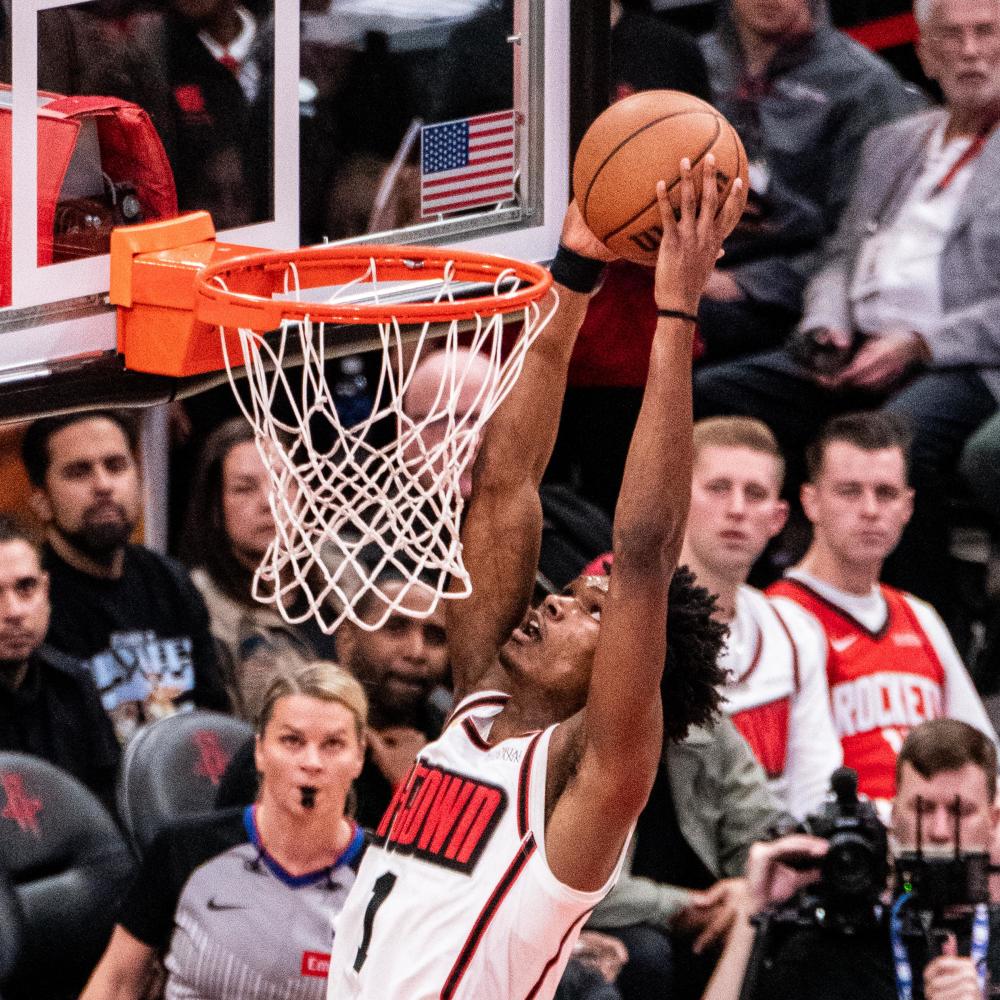 1月5日,火箭队球员阿门·汤普森在比赛中扣篮。新华社发(陈晨摄)