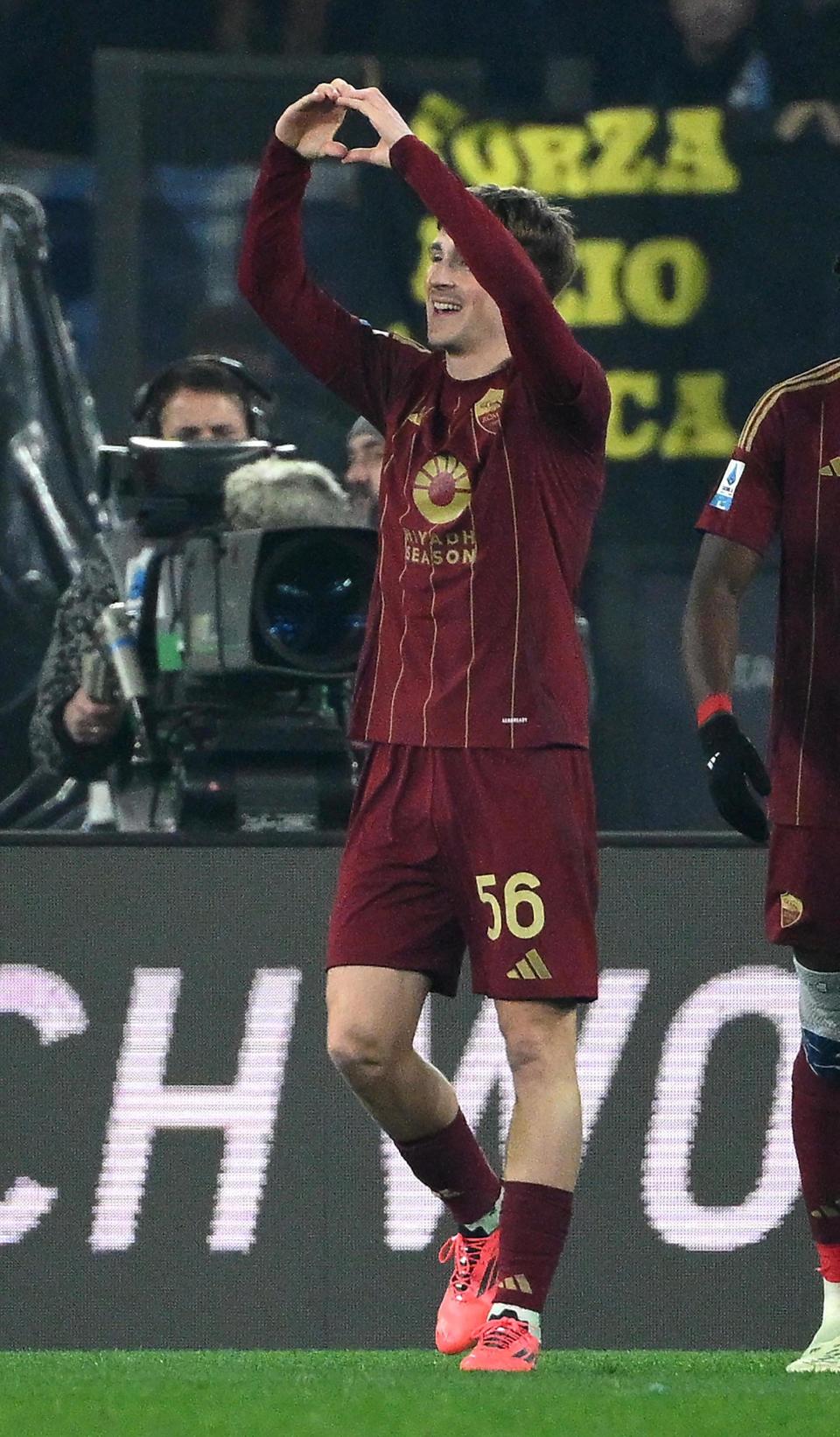 1月5日,罗马队球员萨勒马克尔斯庆祝攻入球队第二球。新华社/欧新