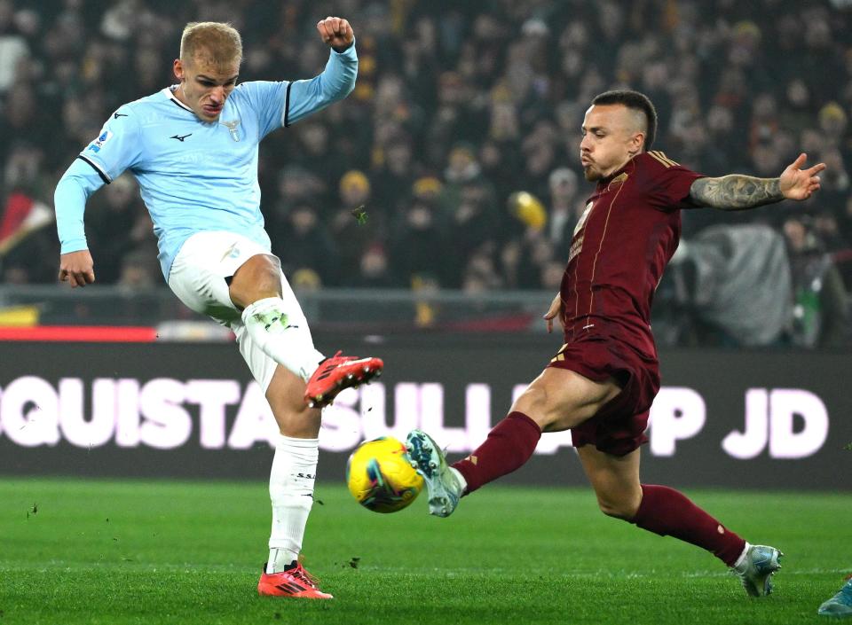 1月5日,罗马队球员安赫利诺(右)与拉齐奥队球员伊萨克森拼抢。新华社/欧新