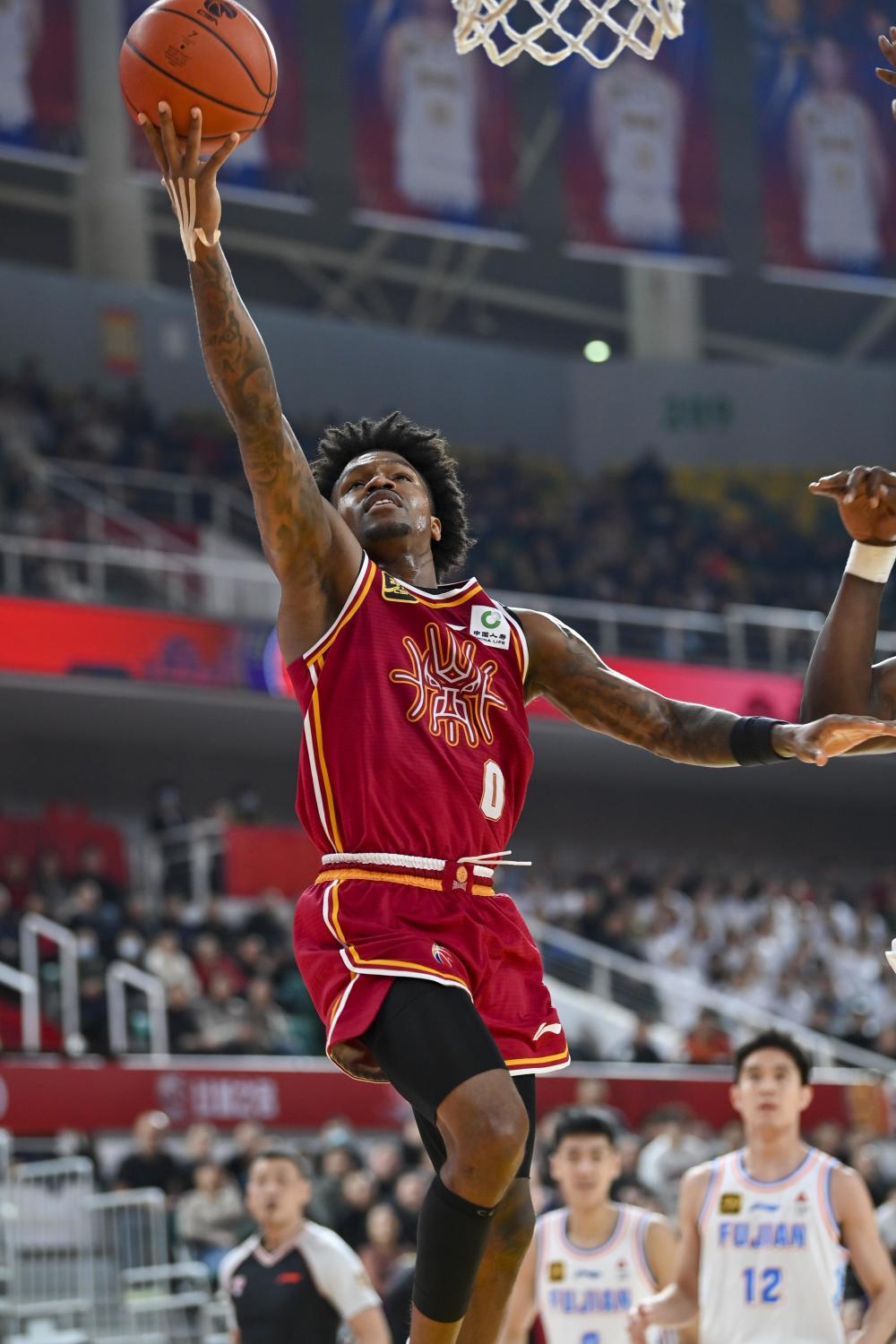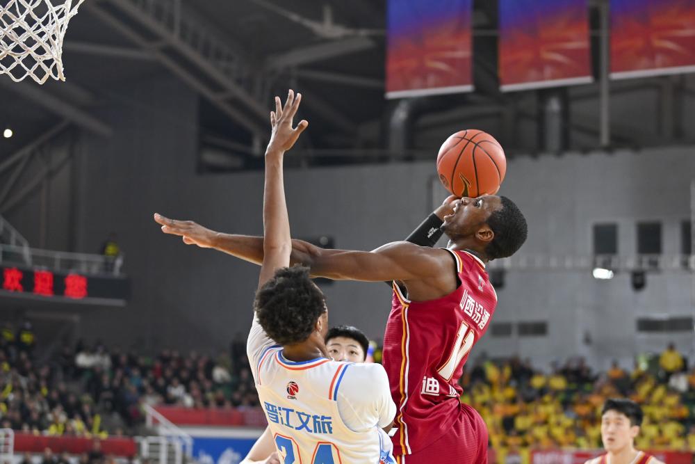 1月7日,山西汾酒队球员古德温在比赛中上篮。新华社记者 杨晨光 摄