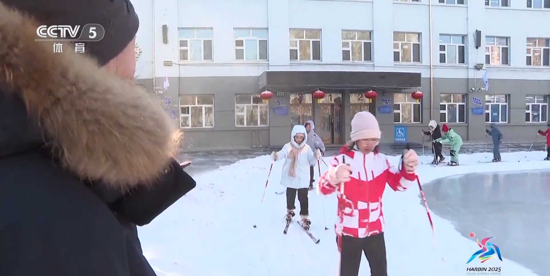 位于哈尔滨南岗区的清滨小学校发挥地域优势,利用天然雪,为孩子们在学校的操场上铺设了雪道。借助举办第九届亚冬会的契机,2024年的冬天,孩子们第一次用上了雪杖与滑雪板。