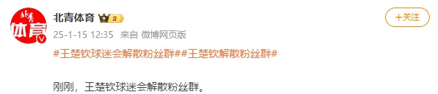 1月15日,据北青体育消息,王楚钦球迷会解散粉丝群。