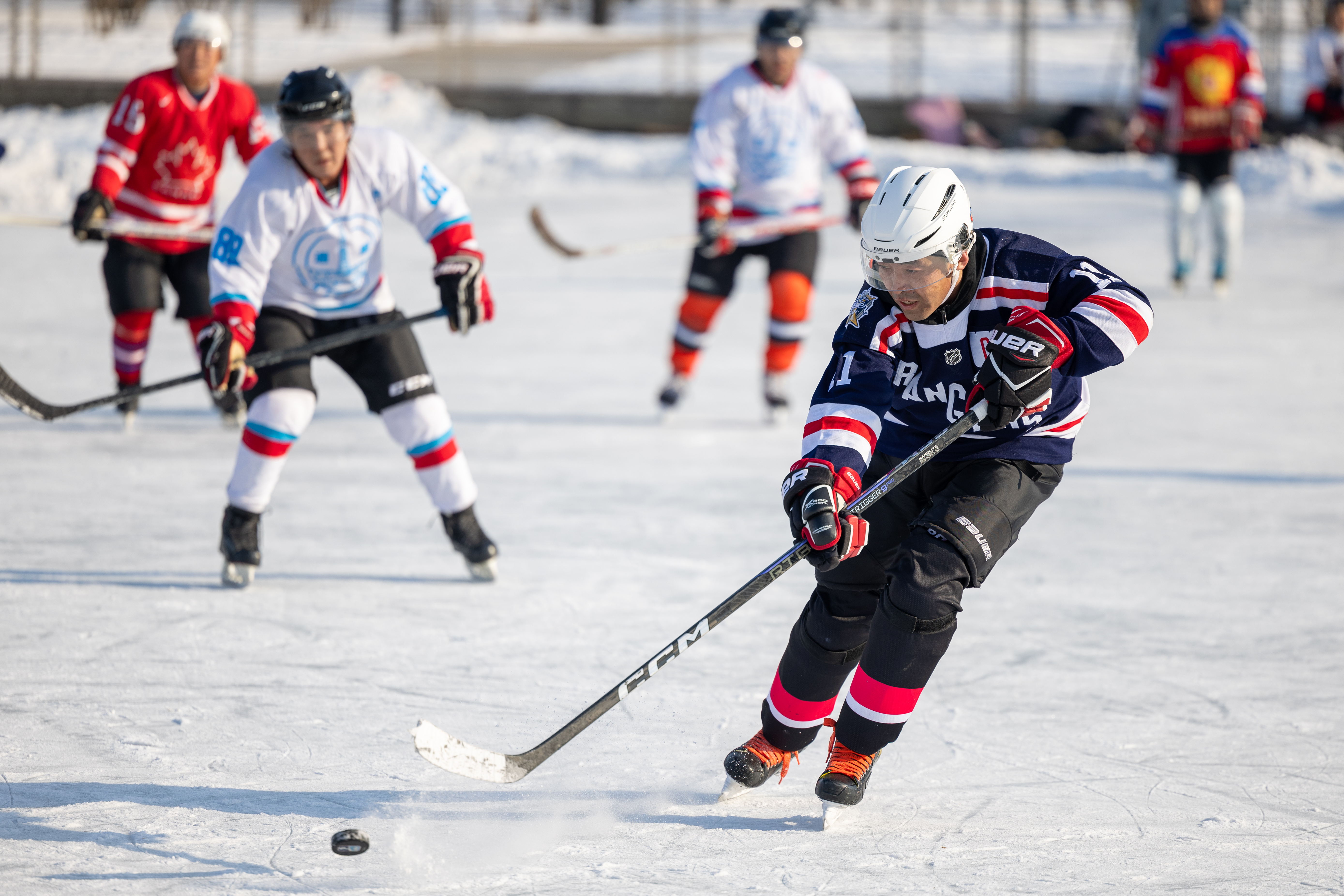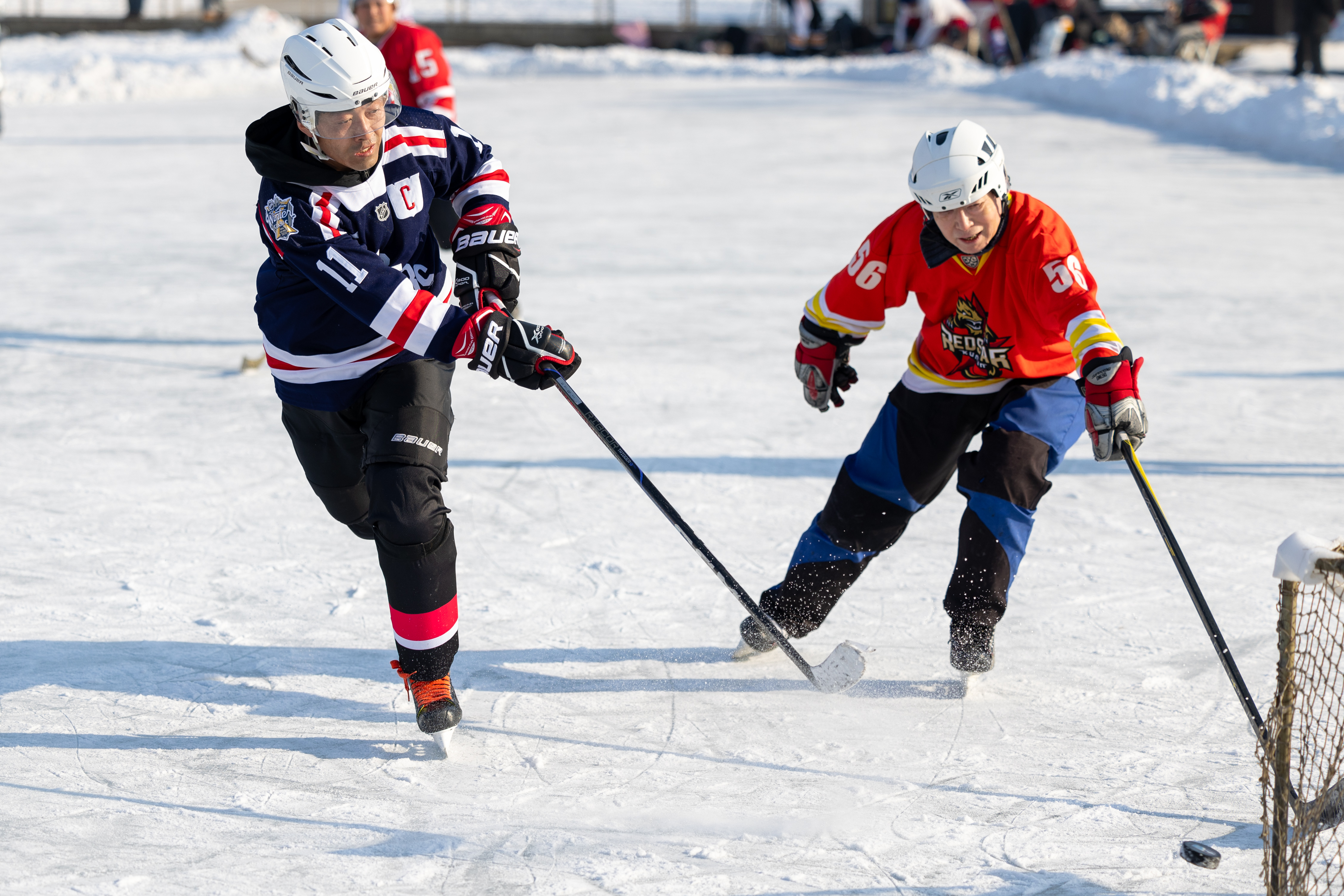 随着2025年第九届亚洲冬季运动会临近,人们在哈尔滨的室外冰场享受冰上运动的快乐。